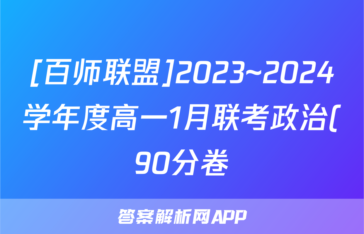 [百师联盟]2023~2024学年度高一1月联考政治(90分卷)试题正在持续更新,目前2024-2025英语周报答案网为大家整理了相关试题及答案,供大家查缺补漏,高效提升成绩。