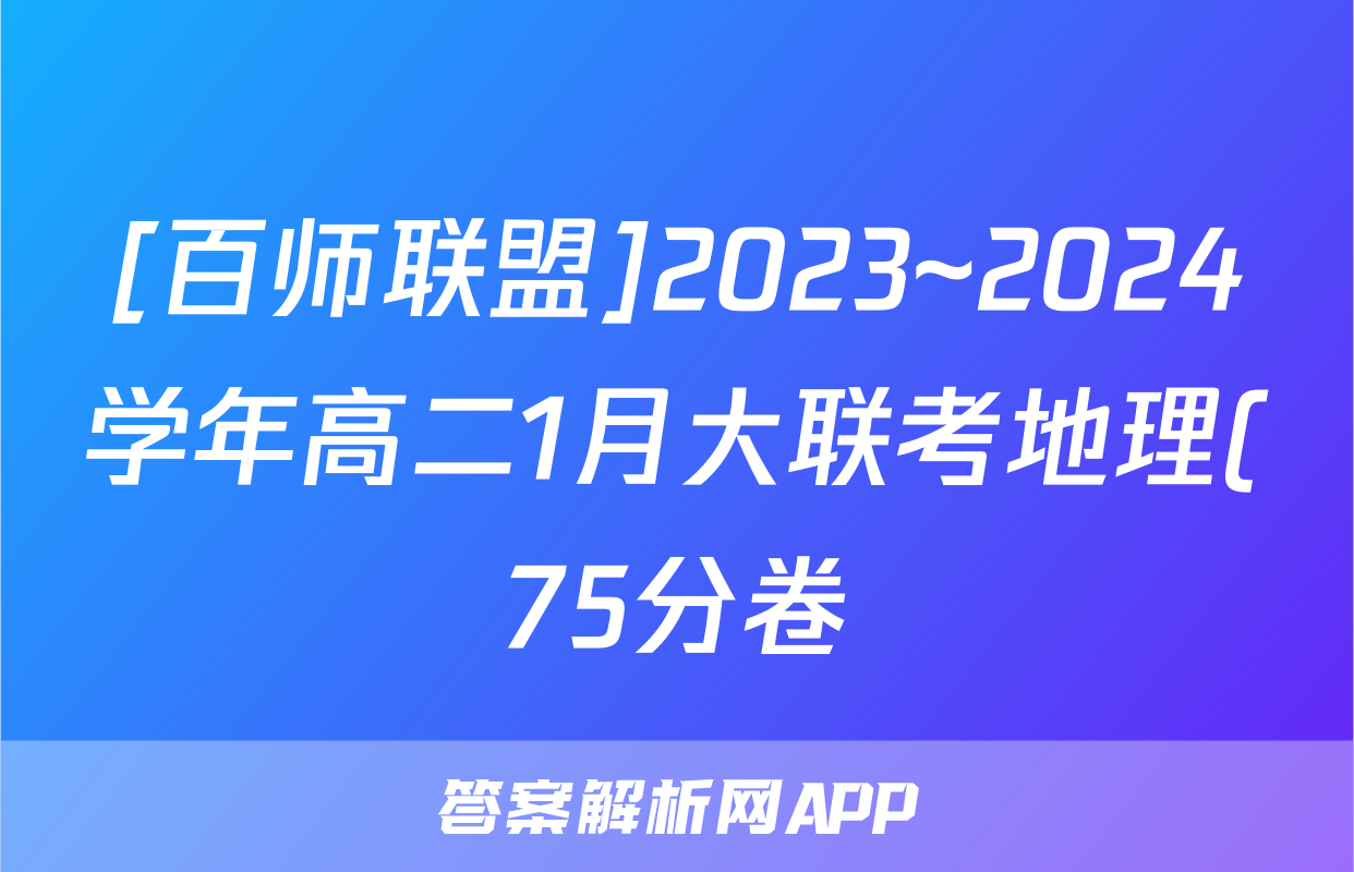 [百师联盟]2023~2024学年高二1月大联考地理(75分卷)答案正在持续更新,目前2024-2025英语周报答案网为大家整理了相关试题及答案,供大家查缺补漏,高效提升成绩。
