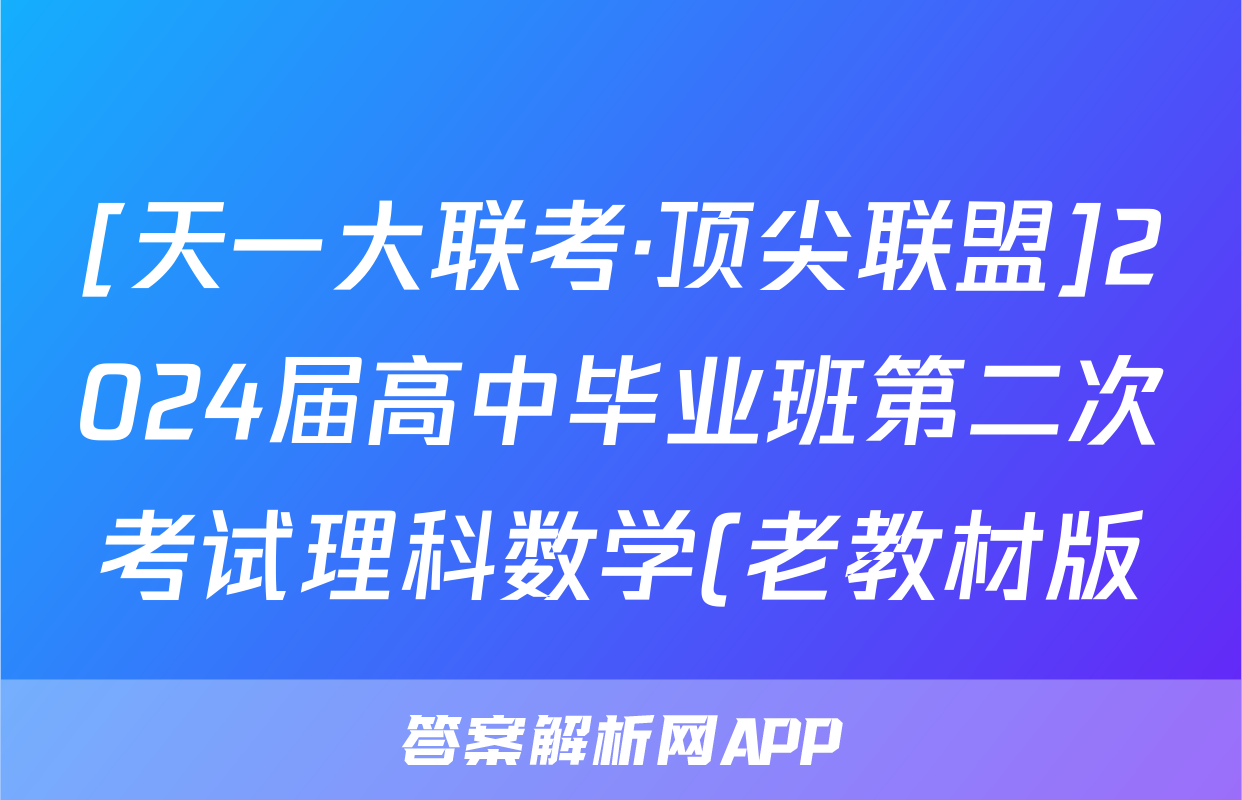 [天一大联考·顶尖联盟]2024届高中毕业班第二次考试理科数学(老教材版)试题正在持续更新,目前2024-2025英语周报答案网为大家整理了相关试题及答案,供大家查缺补漏,高效提升成绩。