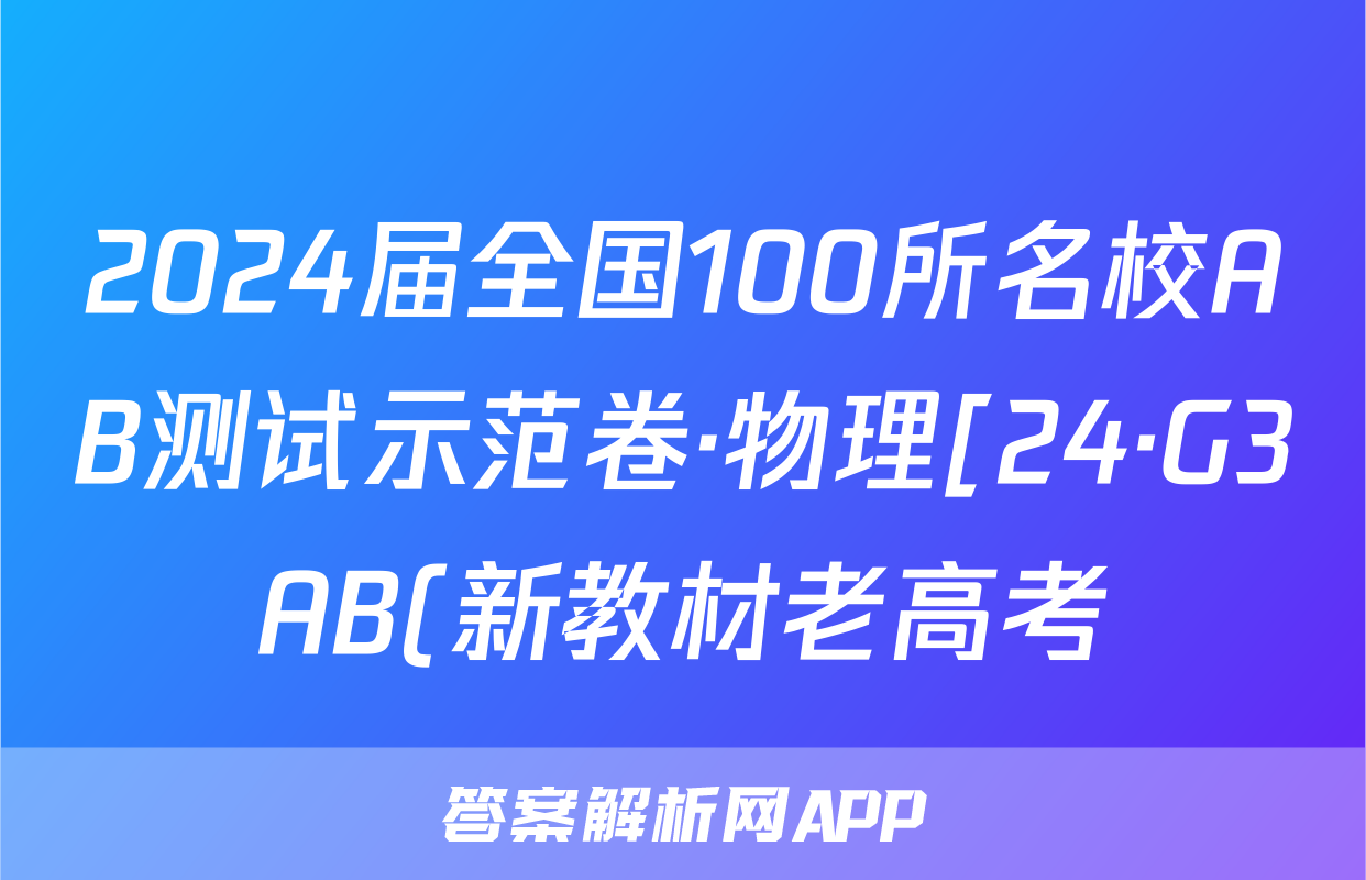 2024届全国100所名校AB测试示范卷·物理[24·G3AB(新教材老高考)·物理-LKB-必考-QG]一试题正在持续更新,目前2024-2025英语周报答案网为大家整理了相关试题及答案,供大家查缺补漏,高效提升成绩。