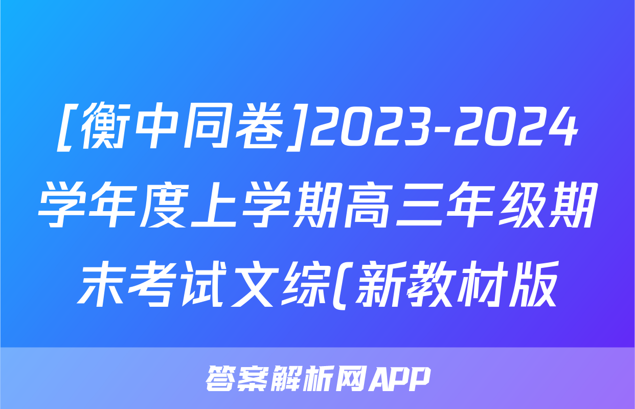 [衡中同卷]2023-2024学年度上学期高三年级期末考试文综(新教材版)答案正在持续更新,目前2024-2025英语周报答案网为大家整理了相关试题及答案,供大家查缺补漏,高效提升成绩。