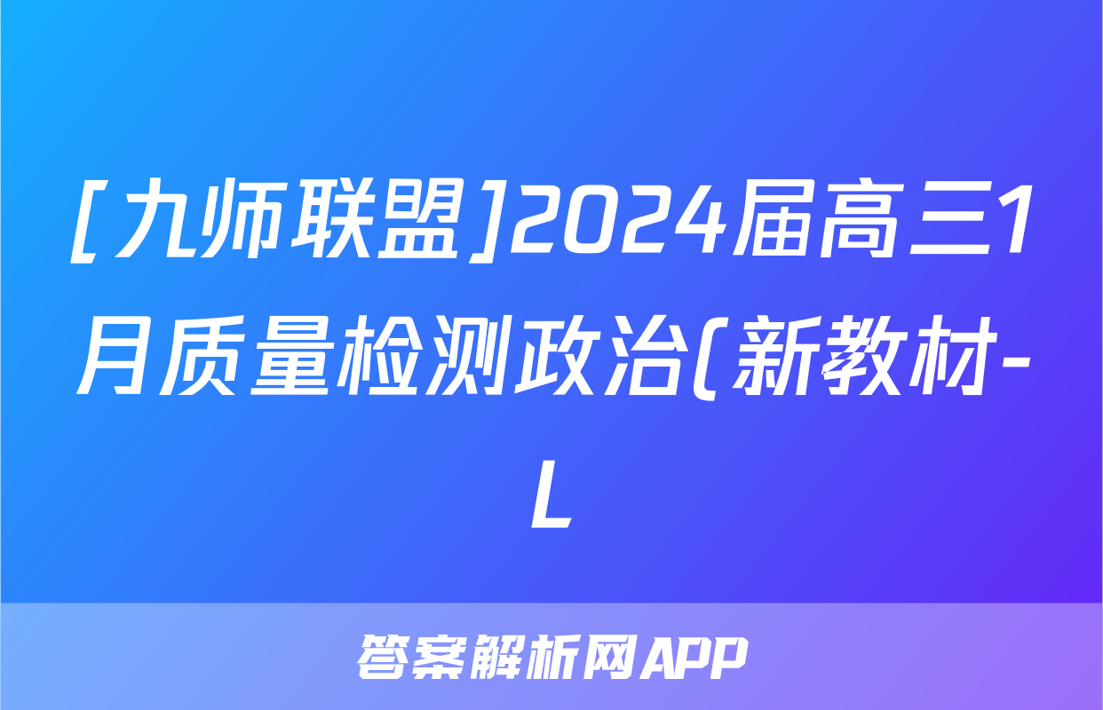 [九师联盟]2024届高三1月质量检测政治(新教材-L)答案正在持续更新,目前2024-2025英语周报答案网为大家整理了相关试题及答案,供大家查缺补漏,高效提升成绩。