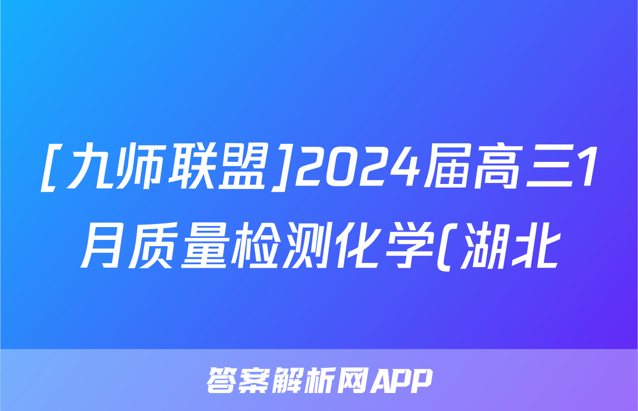 [九师联盟]2024届高三1月质量检测化学(湖北)答案正在持续更新,目前2024-2025英语周报答案网为大家整理了相关试题及答案,供大家查缺补漏,高效提升成绩。