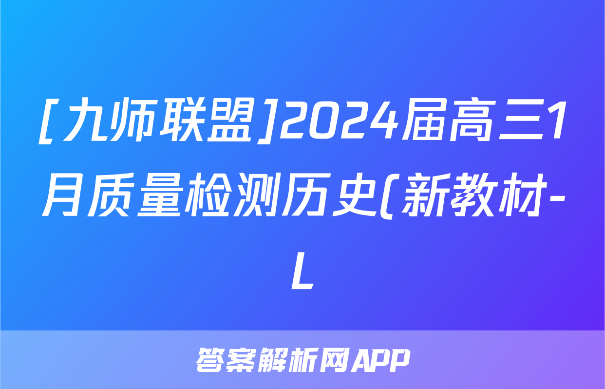 [九师联盟]2024届高三1月质量检测历史(新教材-L)答案正在持续更新,目前2024-2025英语周报答案网为大家整理了相关试题及答案,供大家查缺补漏,高效提升成绩。