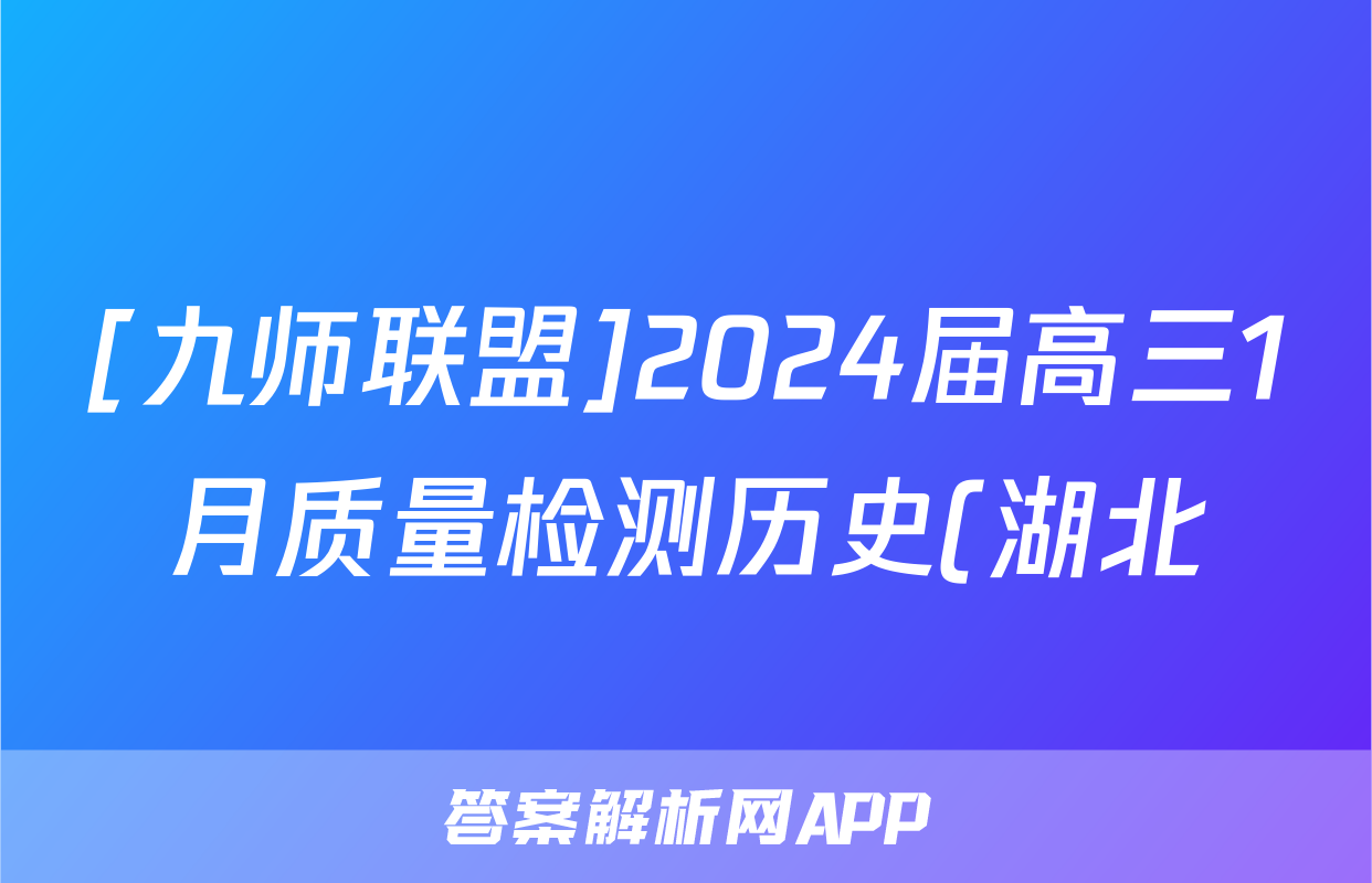 [九师联盟]2024届高三1月质量检测历史(湖北)答案正在持续更新,目前2024-2025英语周报答案网为大家整理了相关试题及答案,供大家查缺补漏,高效提升成绩。