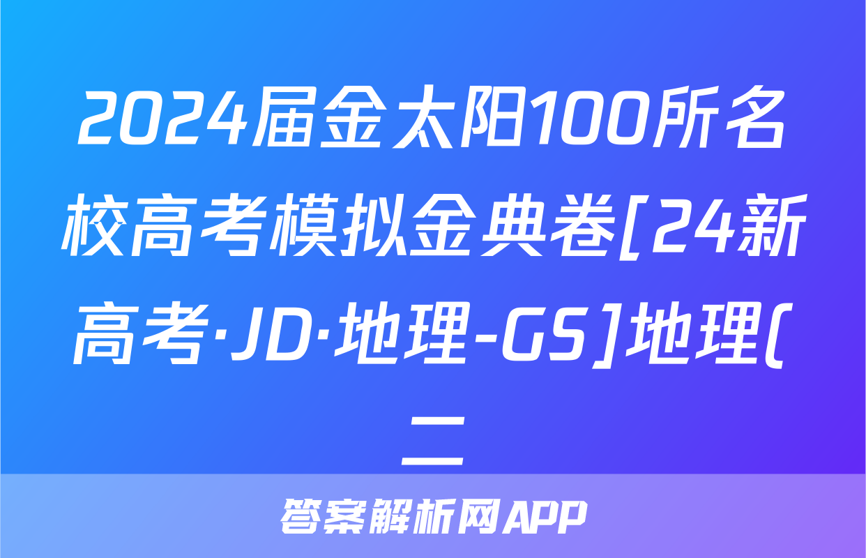 2024届金太阳100所名校高考模拟金典卷[24新高考·JD·地理-GS]地理(二)2答案