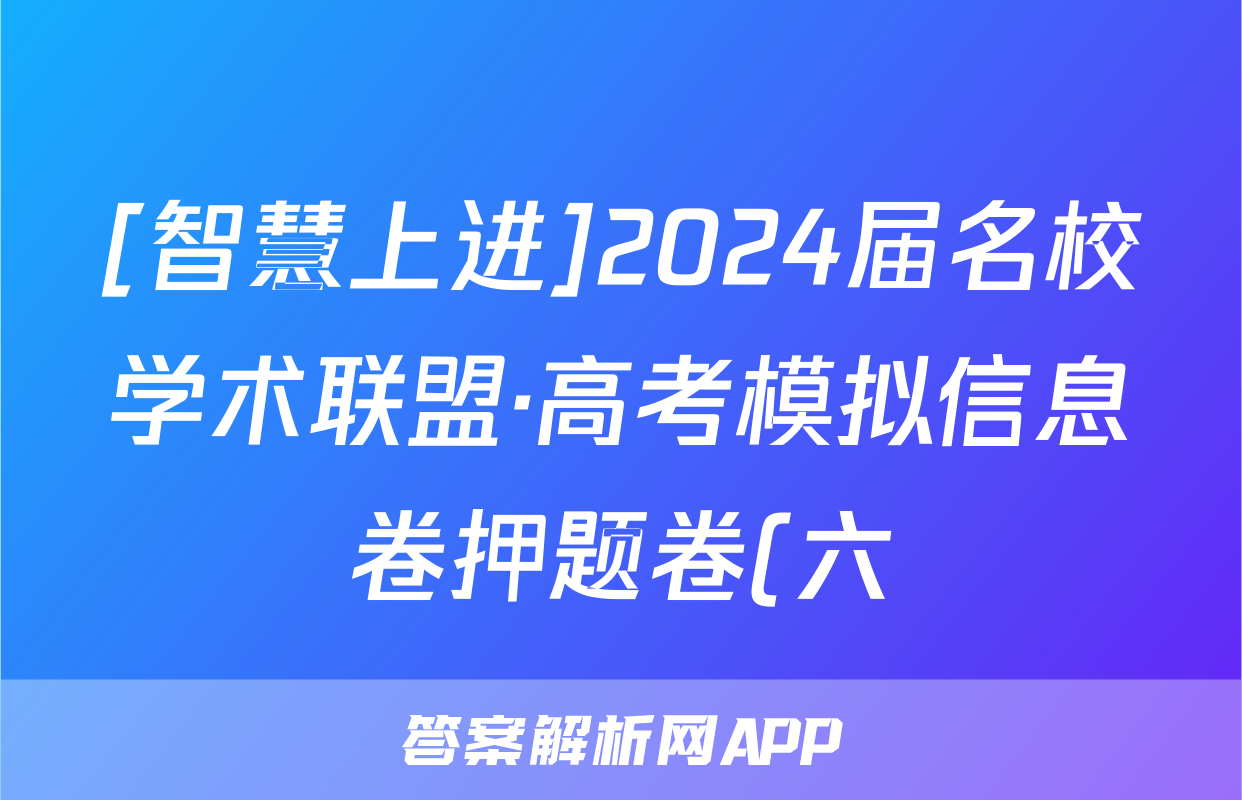 [智慧上进]2024届名校学术联盟·高考模拟信息卷押题卷(六)6政治·HN试题正在持续更新,目前2024-2025英语周报答案网为大家整理了相关试题及答案,供大家查缺补漏,高效提升成绩。
