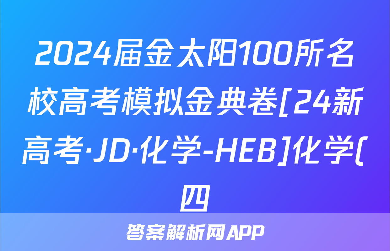 2024届金太阳100所名校高考模拟金典卷[24新高考·JD·化学-HEB]化学(四)4试题