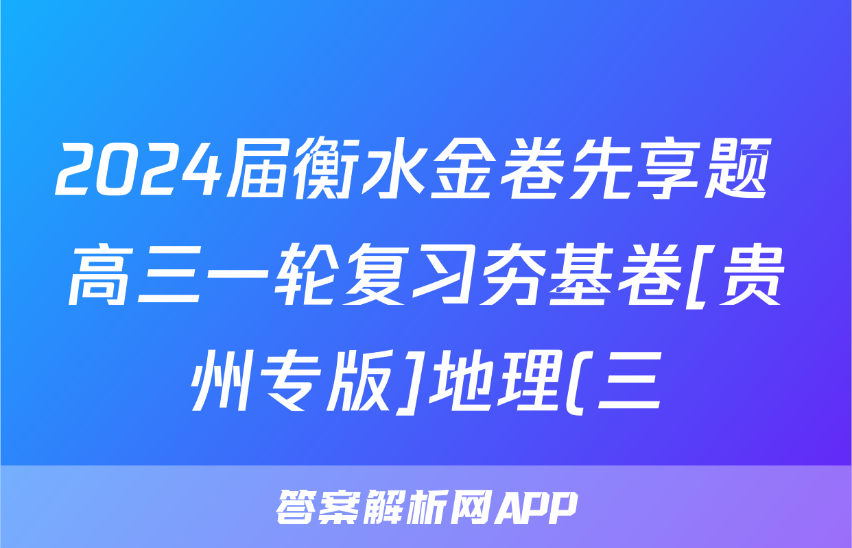 2024届衡水金卷先享题 高三一轮复习夯基卷[贵州专版]地理(三)3试题正在持续更新,目前2024-2025英语周报答案网为大家整理了相关试题及答案,供大家查缺补漏,高效提升成绩。