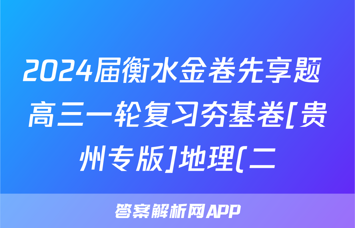 2024届衡水金卷先享题 高三一轮复习夯基卷[贵州专版]地理(二)2试题正在持续更新,目前2024-2025英语周报答案网为大家整理了相关试题及答案,供大家查缺补漏,高效提升成绩。