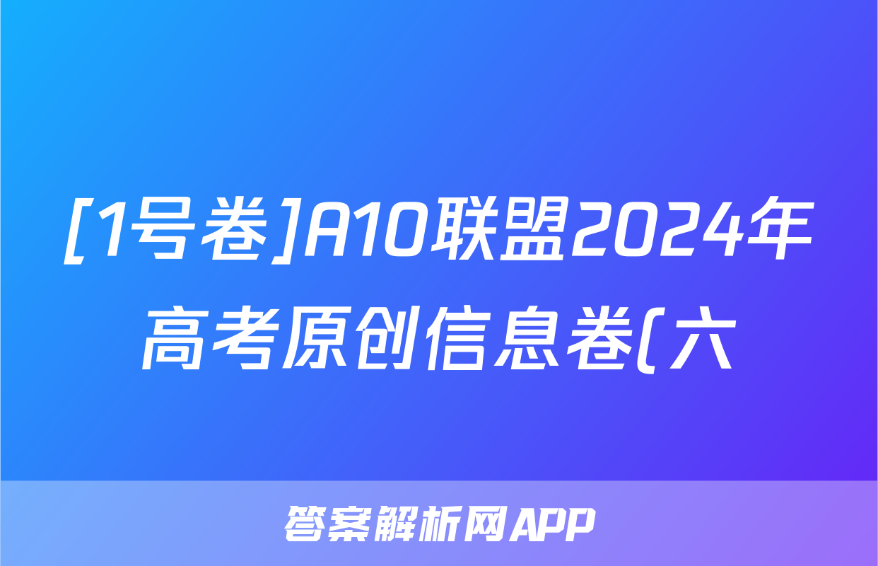 [1号卷]A10联盟2024年高考原创信息卷(六)6政治试题正在持续更新,目前2024-2025英语周报答案网为大家整理了相关试题及答案,供大家查缺补漏,高效提升成绩。