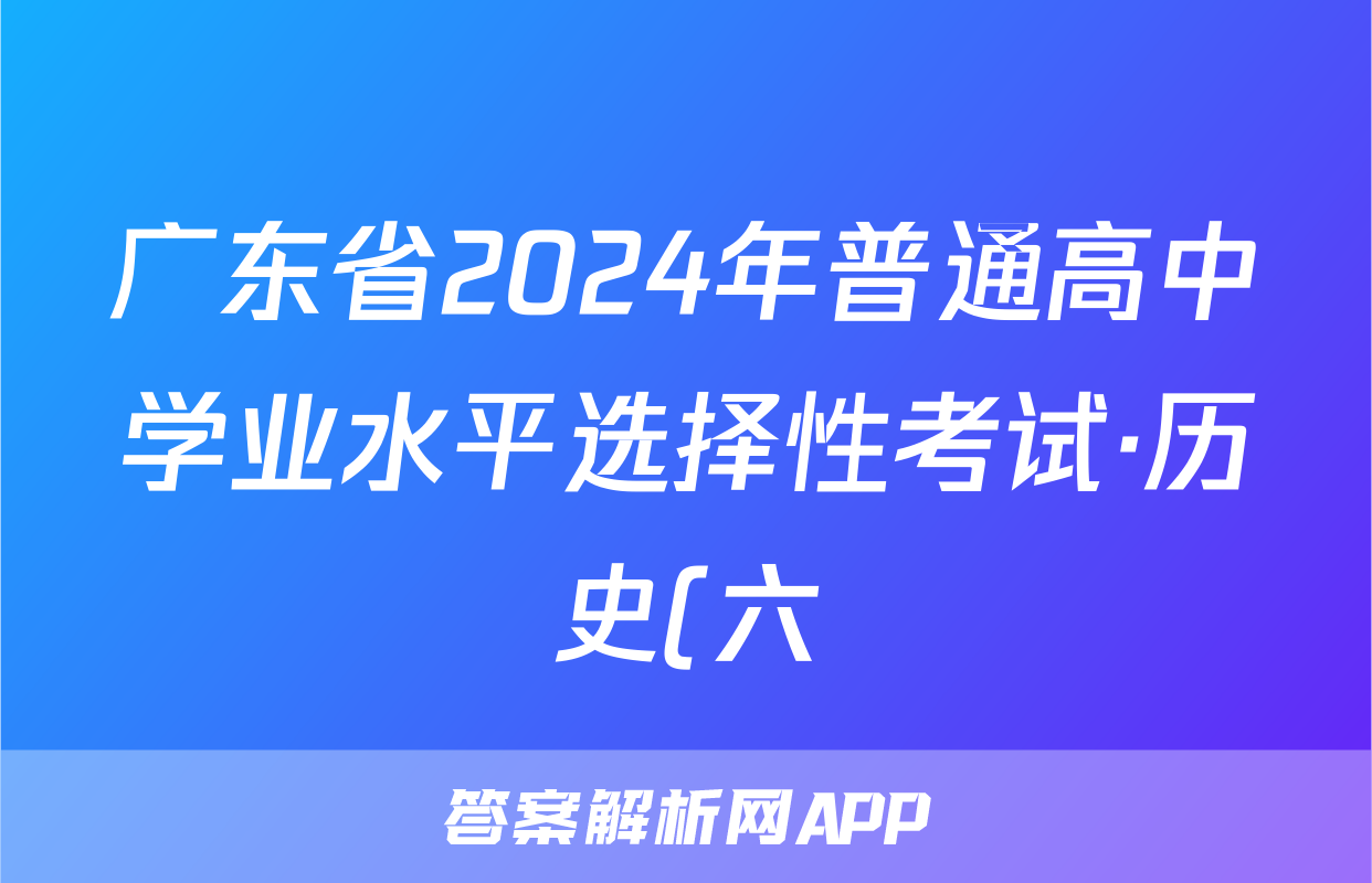广东省2024年普通高中学业水平选择性考试·历史(六)6[24·(新高考)ZX·MNJ·历史·G DONG]试题正在持续更新,目前2024-2025英语周报答案网为大家整理了相关试题及答案,供大家查缺补漏,高效提升成绩。