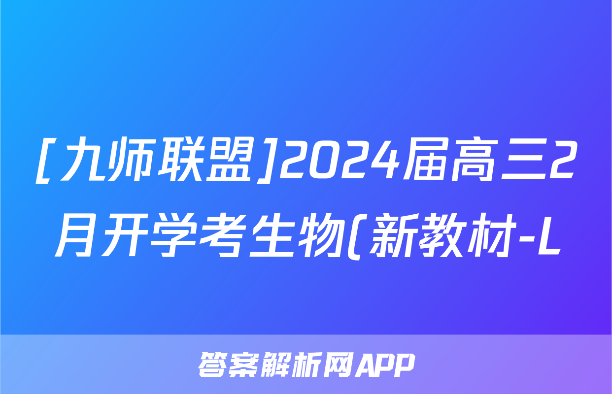 [九师联盟]2024届高三2月开学考生物(新教材-L)答案正在持续更新,目前2024-2025英语周报答案网为大家整理了相关试题及答案,供大家查缺补漏,高效提升成绩。