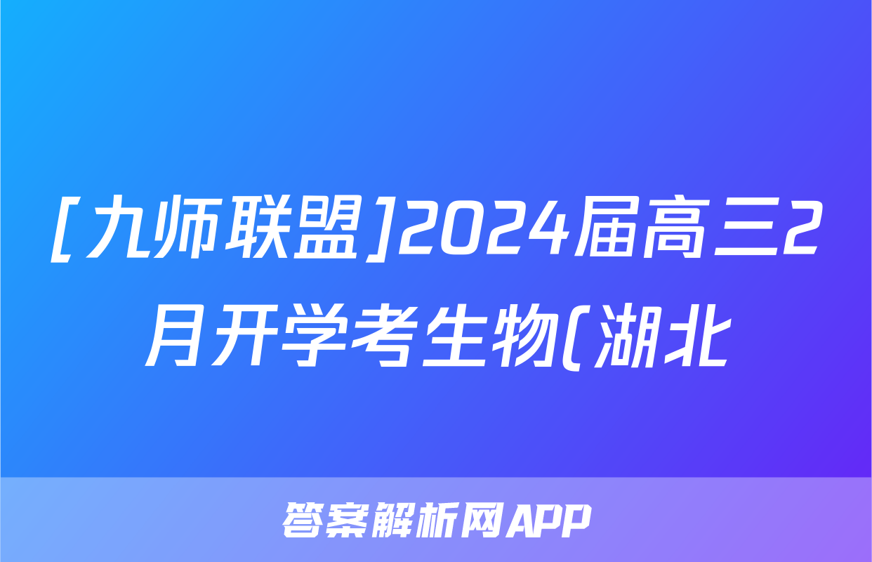 [九师联盟]2024届高三2月开学考生物(湖北)答案正在持续更新,目前2024-2025英语周报答案网为大家整理了相关试题及答案,供大家查缺补漏,高效提升成绩。