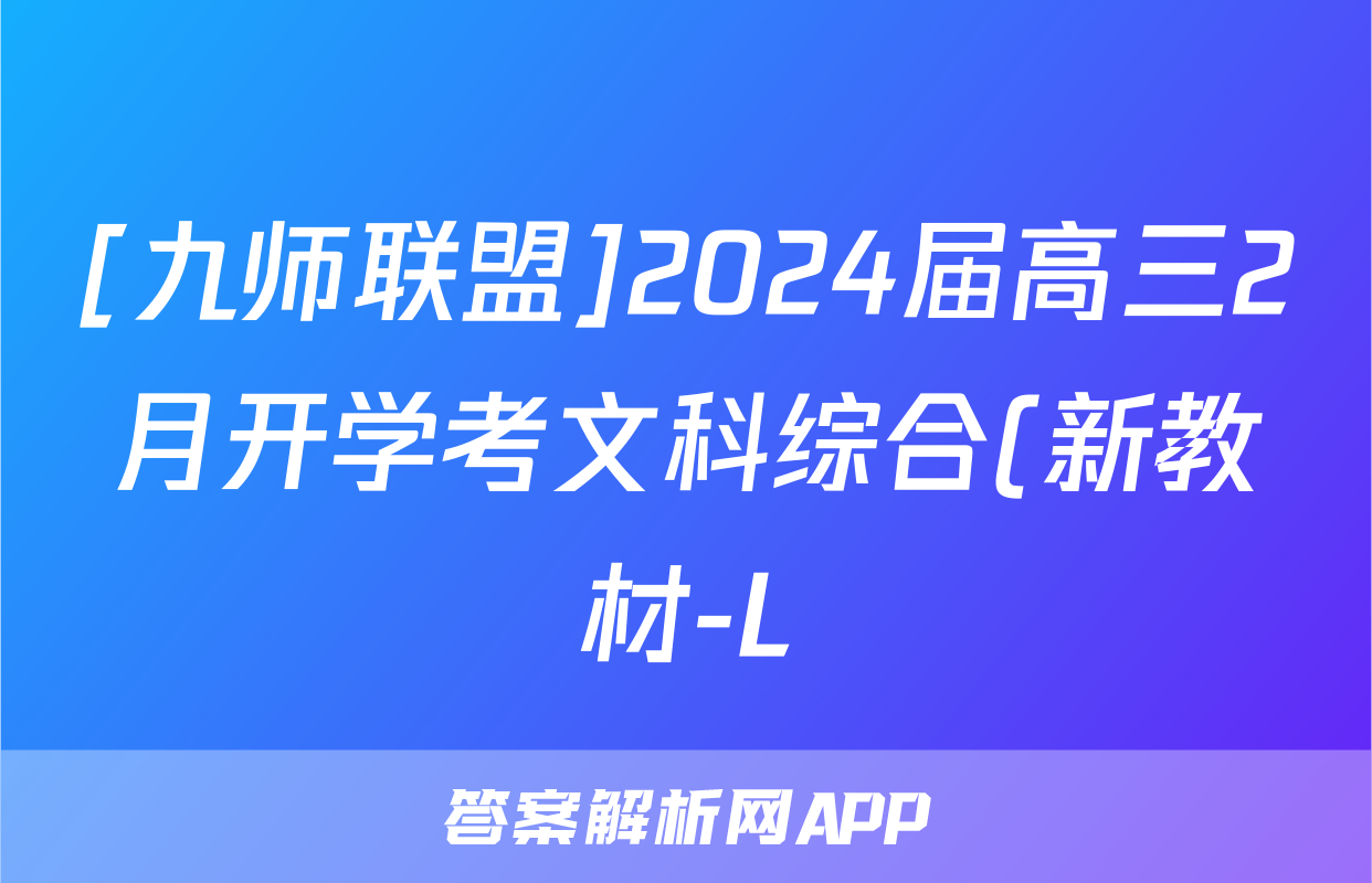 [九师联盟]2024届高三2月开学考文科综合(新教材-L)试题正在持续更新,目前2024-2025英语周报答案网为大家整理了相关试题及答案,供大家查缺补漏,高效提升成绩。