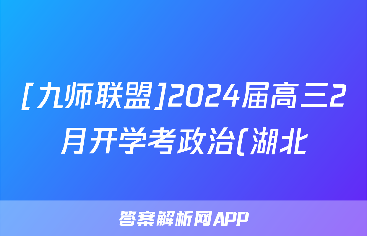 [九师联盟]2024届高三2月开学考政治(湖北)答案正在持续更新,目前2024-2025英语周报答案网为大家整理了相关试题及答案,供大家查缺补漏,高效提升成绩。