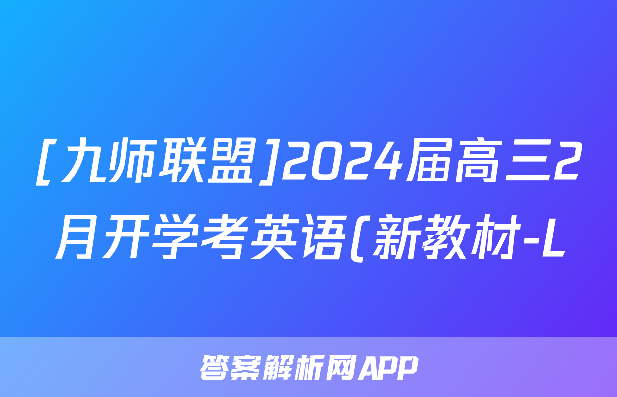 [九师联盟]2024届高三2月开学考英语(新教材-L)试题正在持续更新,目前2024-2025英语周报答案网为大家整理了相关试题及答案,供大家查缺补漏,高效提升成绩。