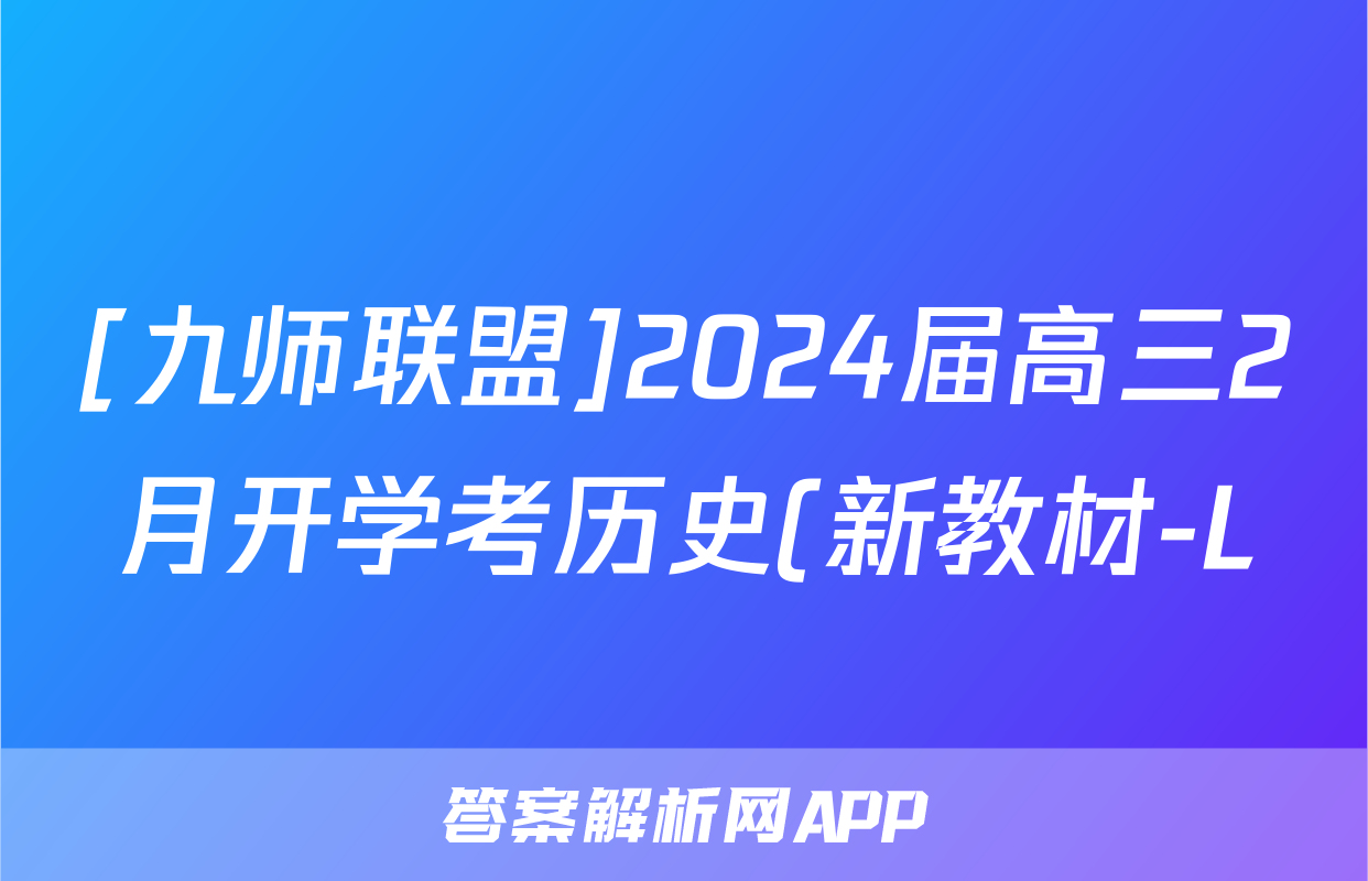 [九师联盟]2024届高三2月开学考历史(新教材-L)试题正在持续更新,目前2024-2025英语周报答案网为大家整理了相关试题及答案,供大家查缺补漏,高效提升成绩。