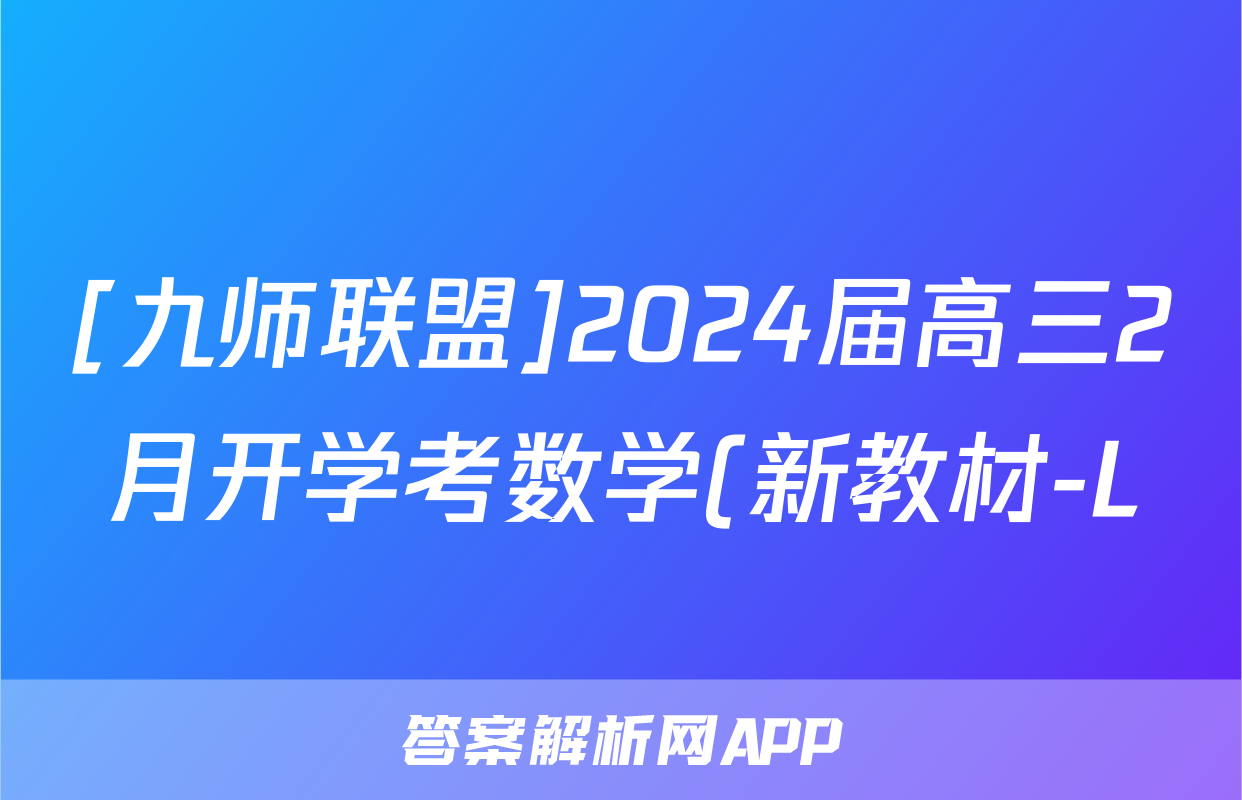 [九师联盟]2024届高三2月开学考数学(新教材-L)试题正在持续更新,目前2024-2025英语周报答案网为大家整理了相关试题及答案,供大家查缺补漏,高效提升成绩。
