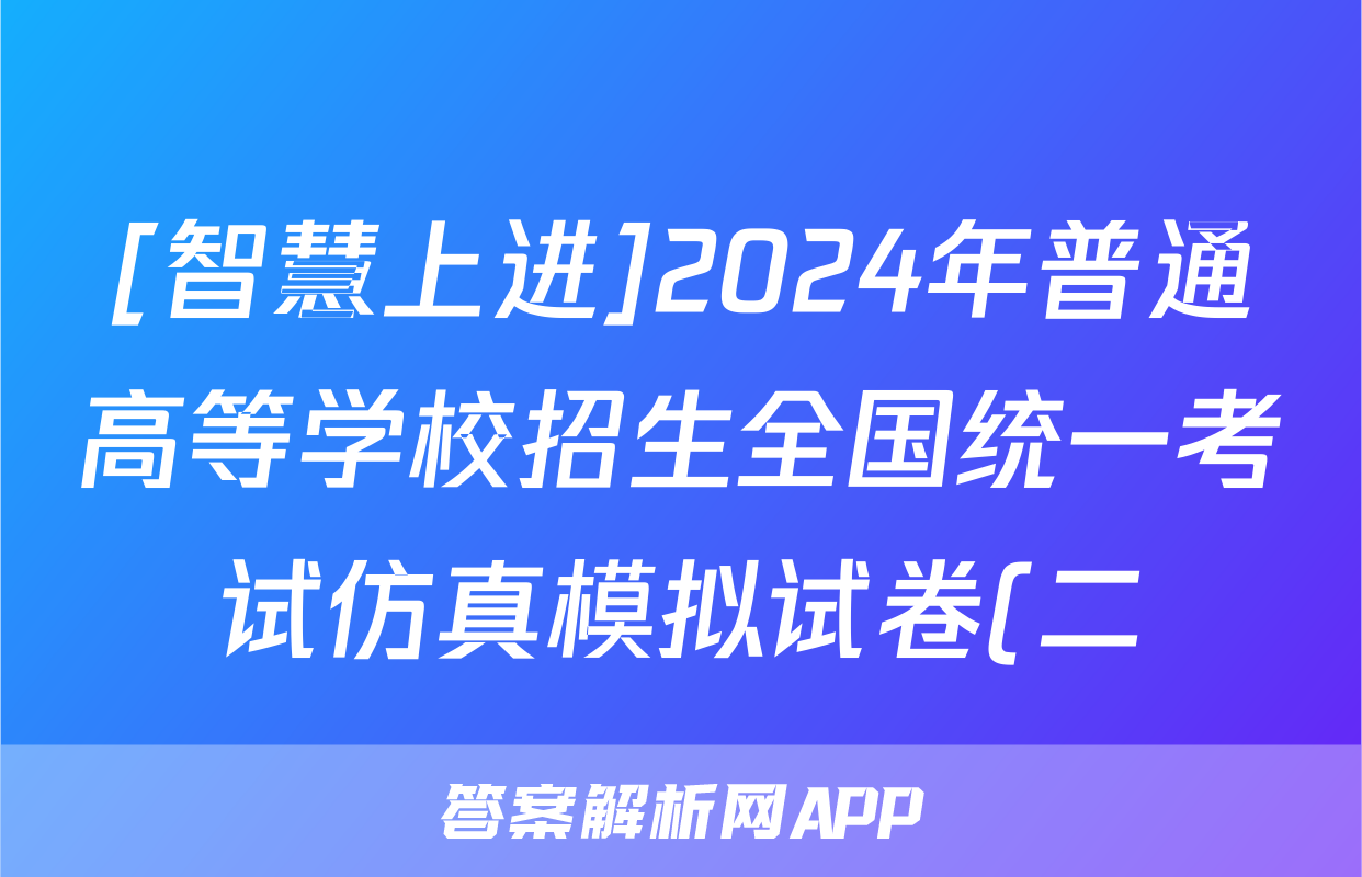 [智慧上进]2024年普通高等学校招生全国统一考试仿真模拟试卷(二)2英语试题正在持续更新,目前2024-2025英语周报答案网为大家整理了相关试题及答案,供大家查缺补漏,高效提升成绩。