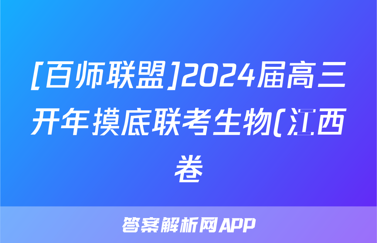 [百师联盟]2024届高三开年摸底联考生物(江西卷)答案正在持续更新,目前2024-2025英语周报答案网为大家整理了相关试题及答案,供大家查缺补漏,高效提升成绩。
