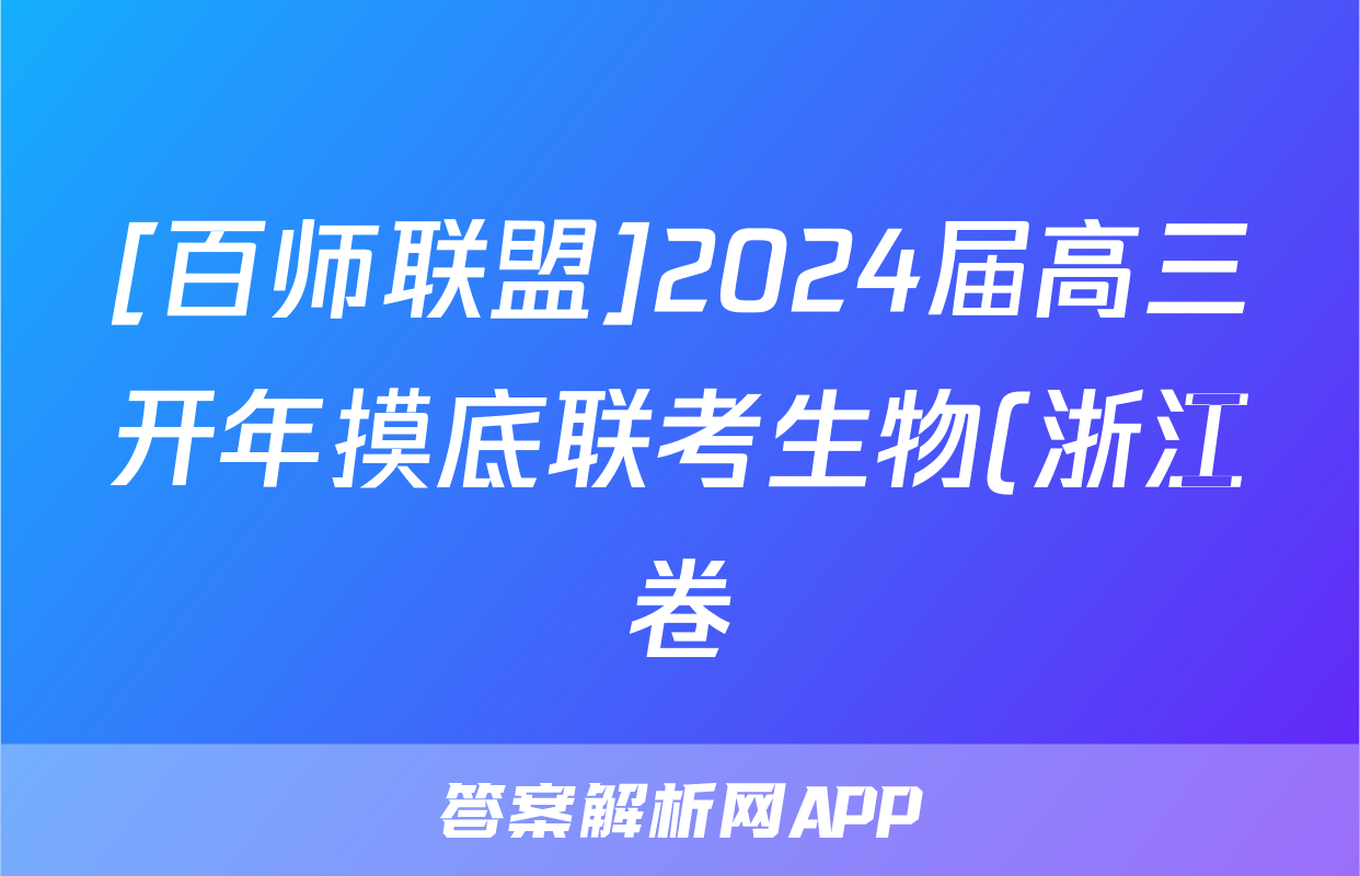[百师联盟]2024届高三开年摸底联考生物(浙江卷)答案正在持续更新,目前2024-2025英语周报答案网为大家整理了相关试题及答案,供大家查缺补漏,高效提升成绩。