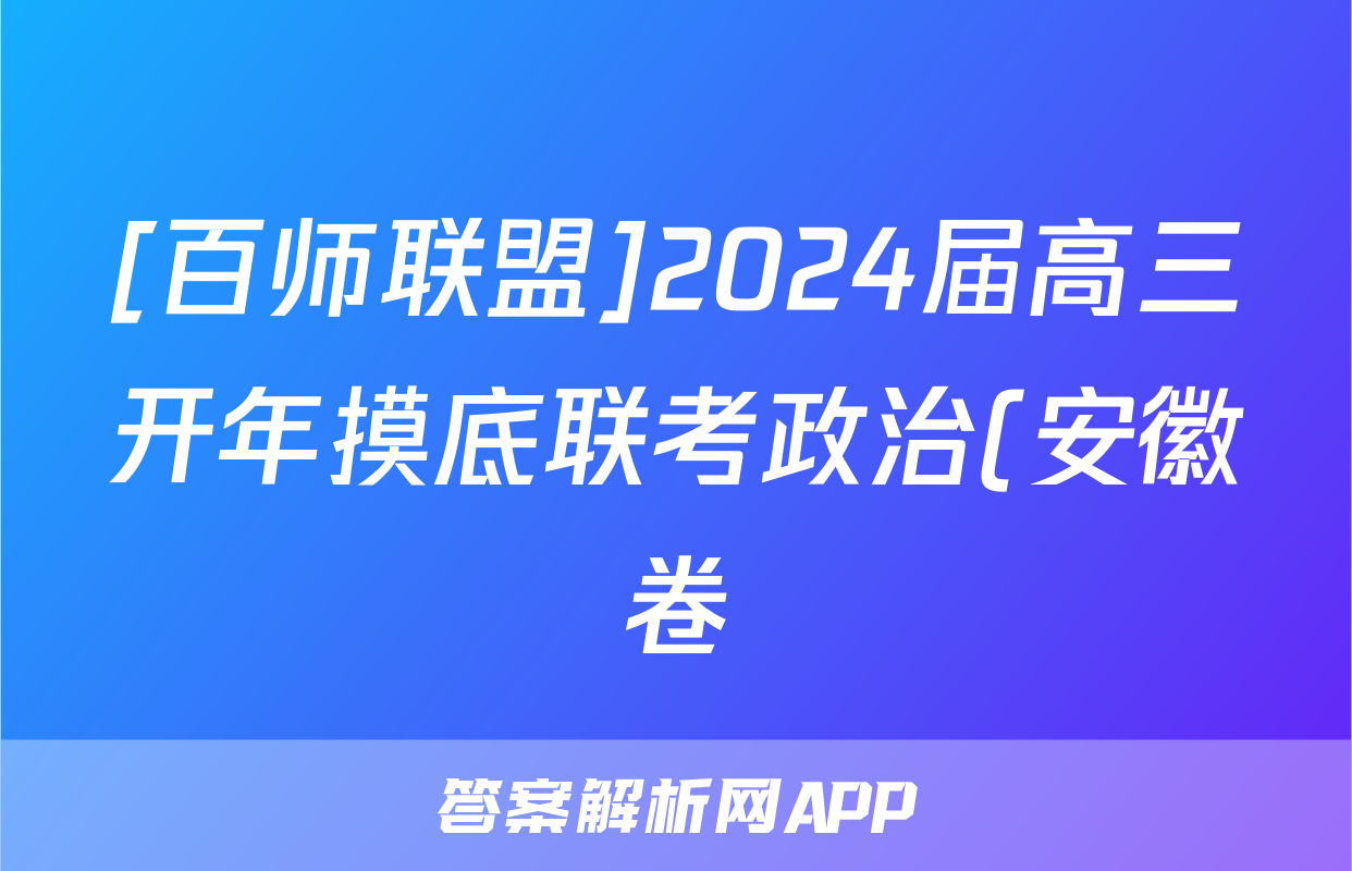 1、百师联盟 2024届高三开年摸底联考 安徽卷政治试题