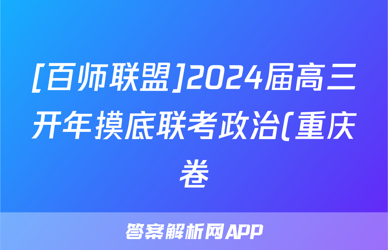 [百师联盟]2024届高三开年摸底联考政治(重庆卷)答案正在持续更新,目前2024-2025英语周报答案网为大家整理了相关试题及答案,供大家查缺补漏,高效提升成绩。