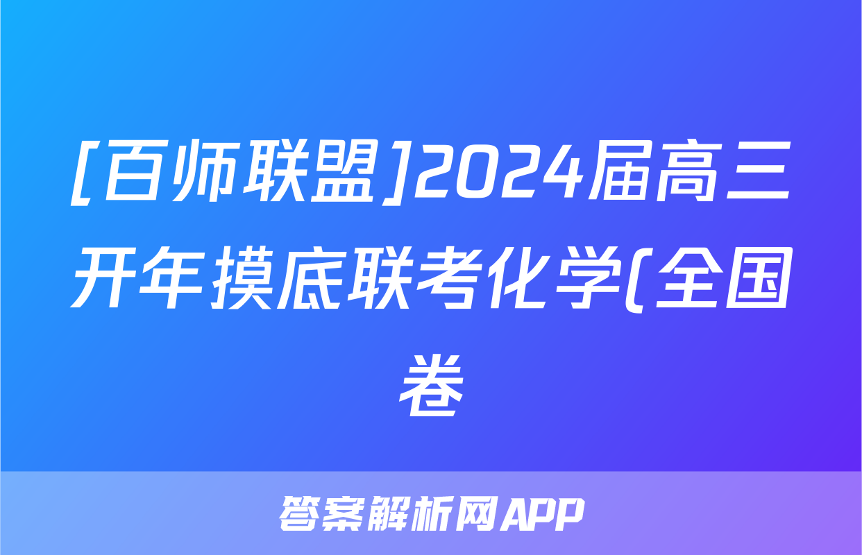 [百师联盟]2024届高三开年摸底联考化学(全国卷)答案正在持续更新,目前2024-2025英语周报答案网为大家整理了相关试题及答案,供大家查缺补漏,高效提升成绩。