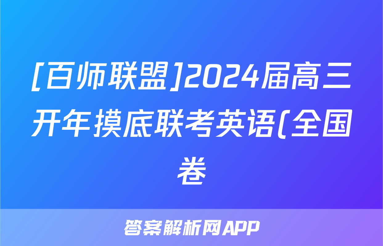 [百师联盟]2024届高三开年摸底联考英语(全国卷)答案