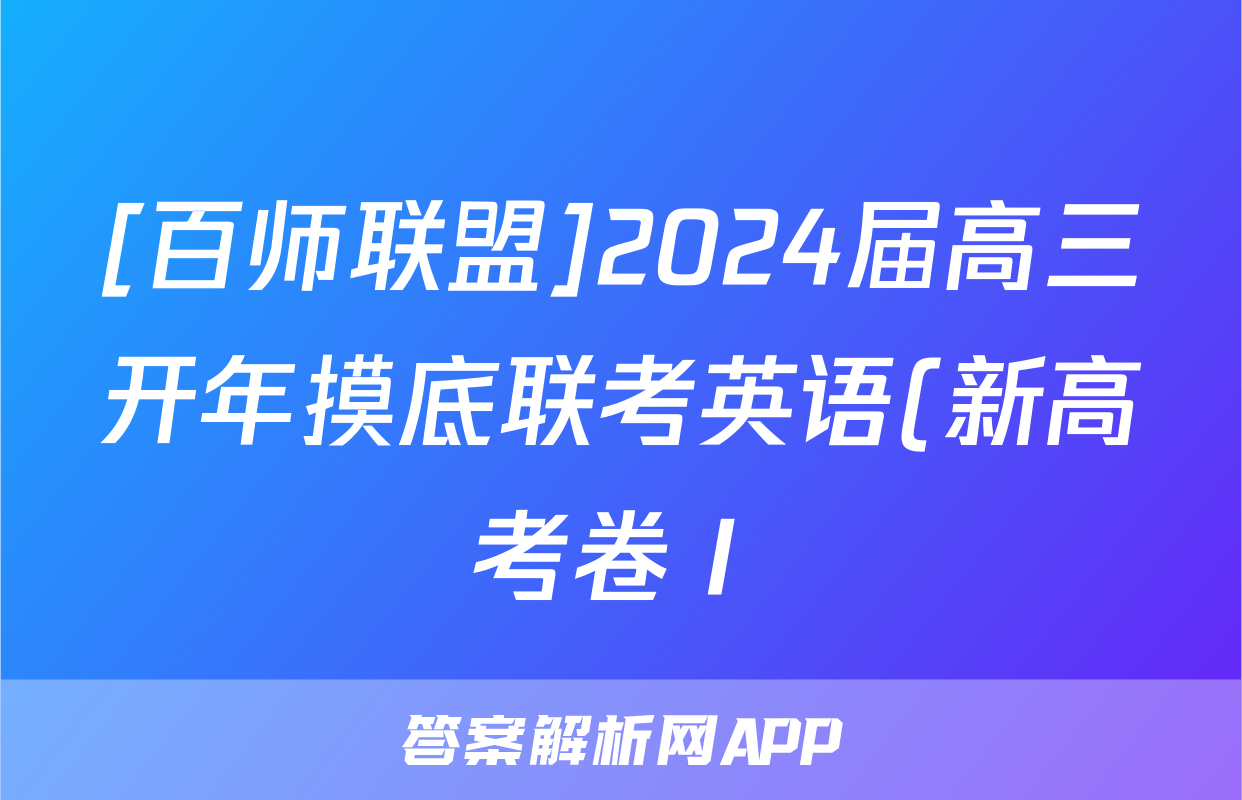 [百师联盟]2024届高三开年摸底联考英语(新高考卷Ⅰ)试题正在持续更新,目前2024-2025英语周报答案网为大家整理了相关试题及答案,供大家查缺补漏,高效提升成绩。
