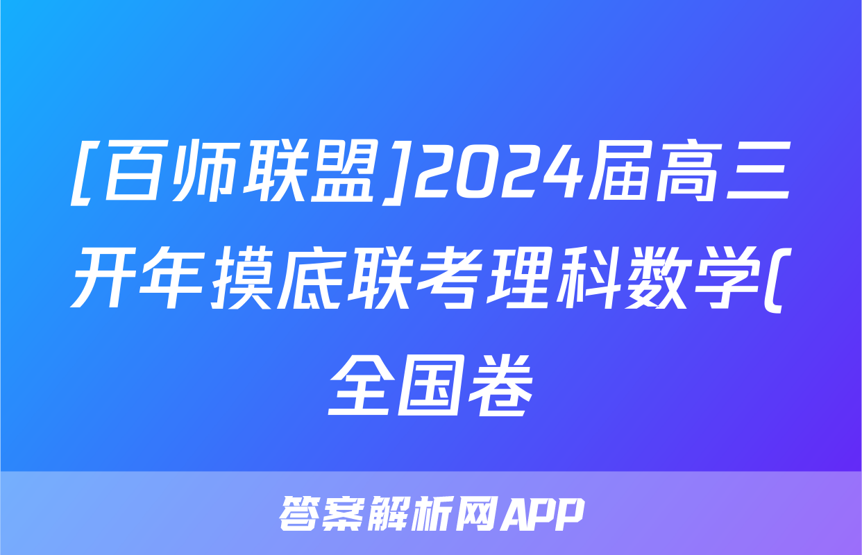[百师联盟]2024届高三开年摸底联考理科数学(全国卷)试题正在持续更新,目前2024-2025英语周报答案网为大家整理了相关试题及答案,供大家查缺补漏,高效提升成绩。