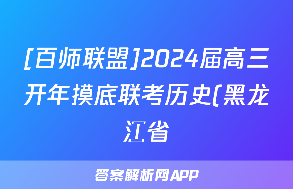 [百师联盟]2024届高三开年摸底联考历史(黑龙江省)答案正在持续更新,目前2024-2025英语周报答案网为大家整理了相关试题及答案,供大家查缺补漏,高效提升成绩。