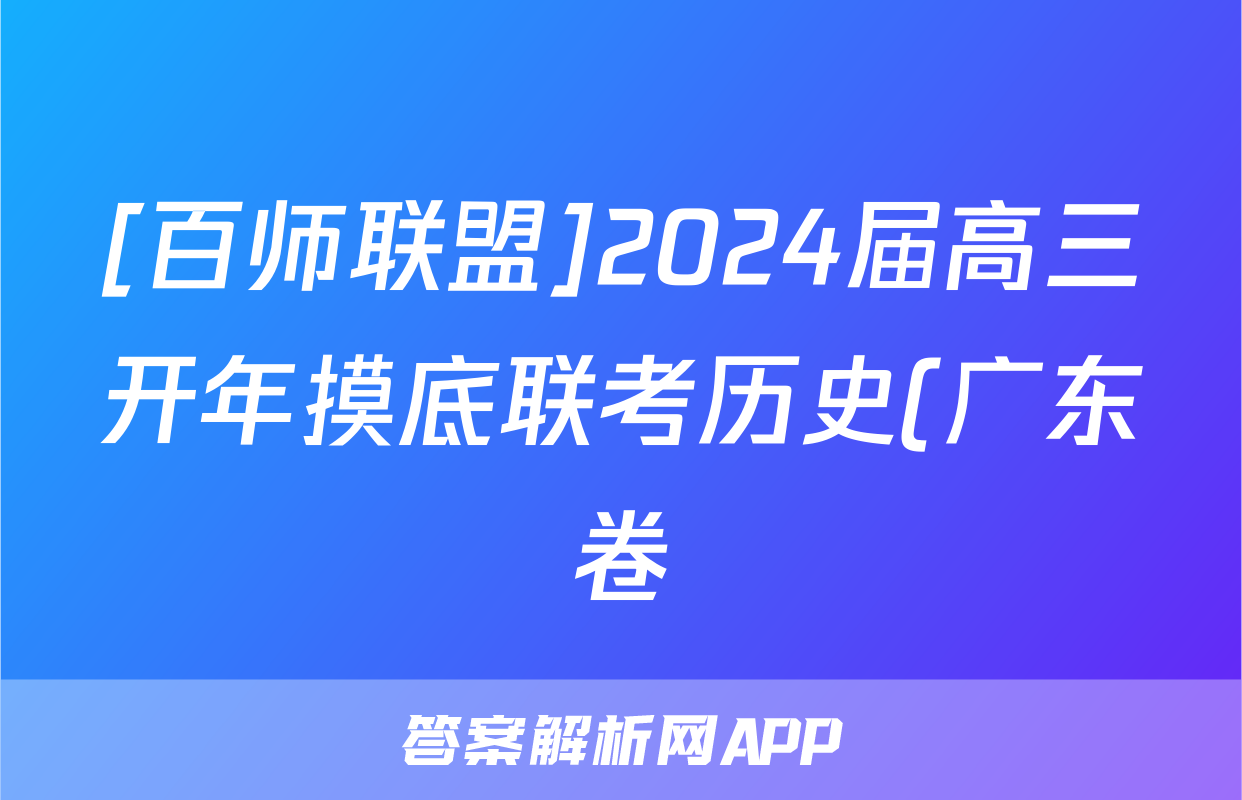 [百师联盟]2024届高三开年摸底联考历史(广东卷)试题正在持续更新,目前2024-2025英语周报答案网为大家整理了相关试题及答案,供大家查缺补漏,高效提升成绩。