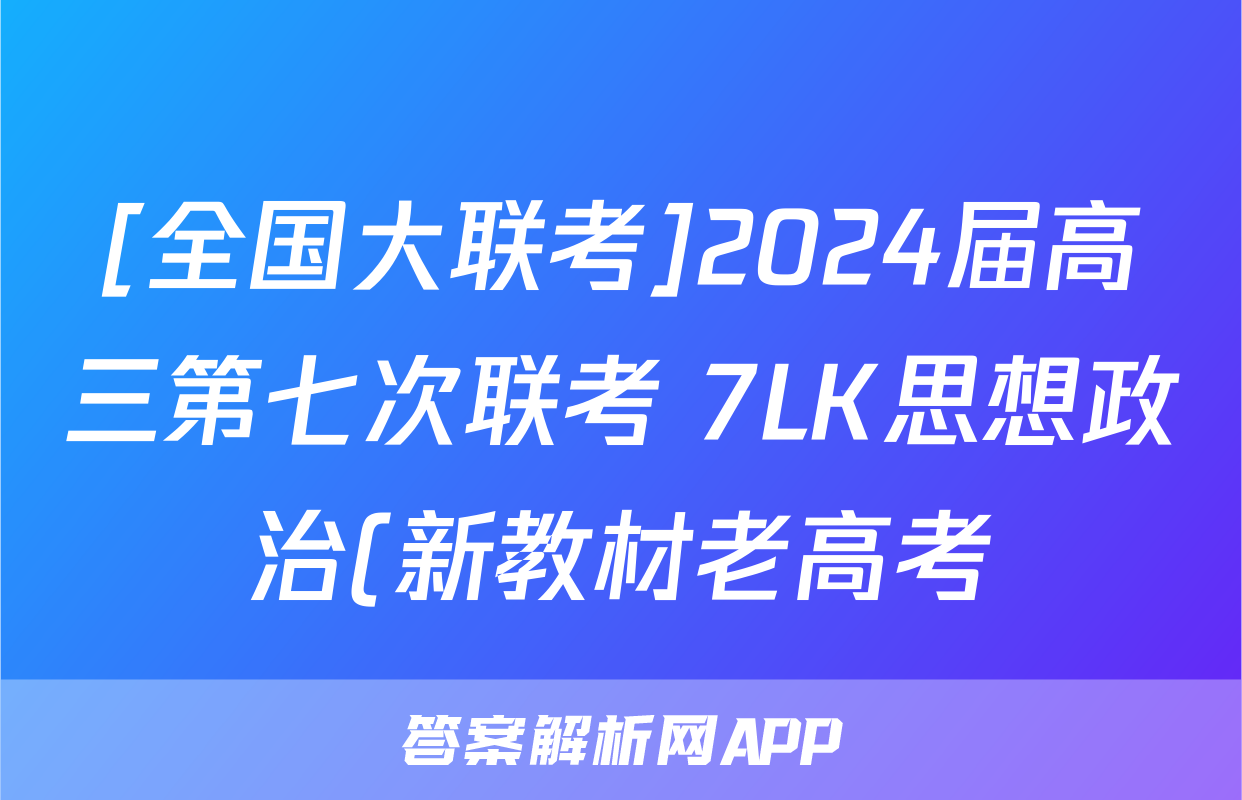 [全国大联考]2024届高三第七次联考 7LK思想政治(新教材老高考)试题