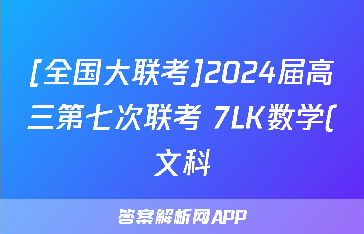 [全国大联考]2024届高三第七次联考 7LK数学(文科)QG答案正在持续更新,目前2024-2025英语周报答案网为大家整理了相关试题及答案,供大家查缺补漏,高效提升成绩。