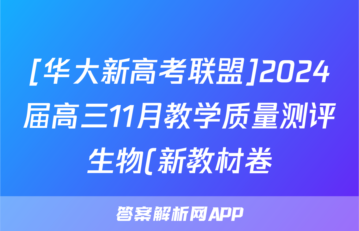 [华大新高考联盟]2024届高三11月教学质量测评生物(新教材卷)试题