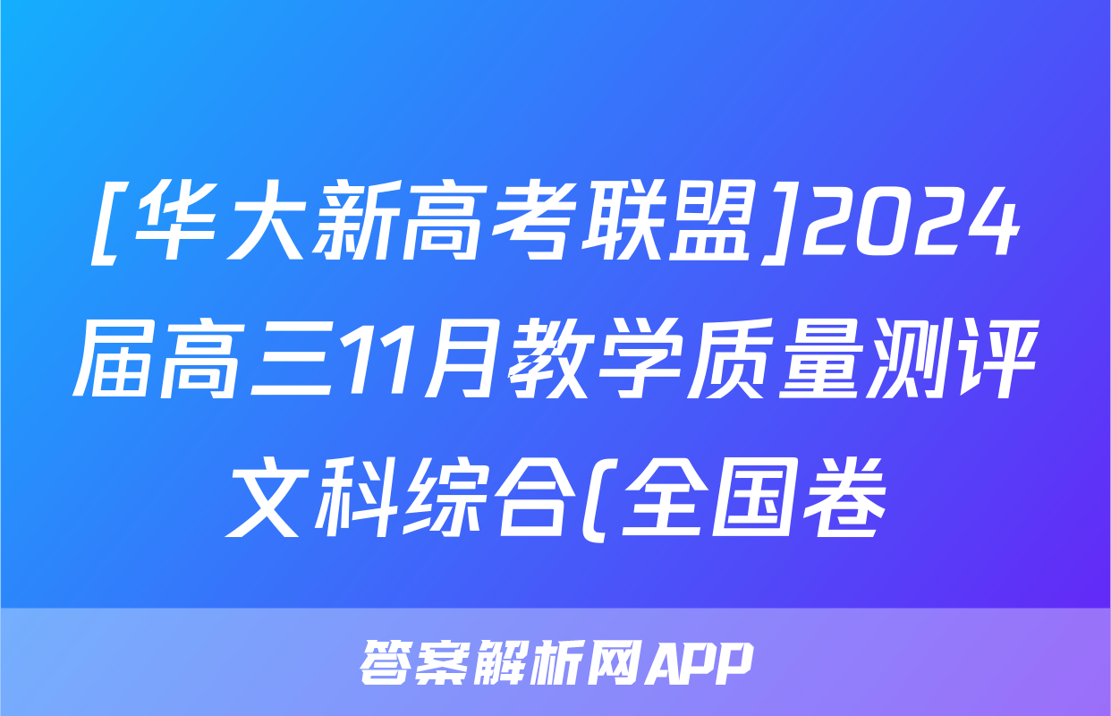 [华大新高考联盟]2024届高三11月教学质量测评文科综合(全国卷)答案