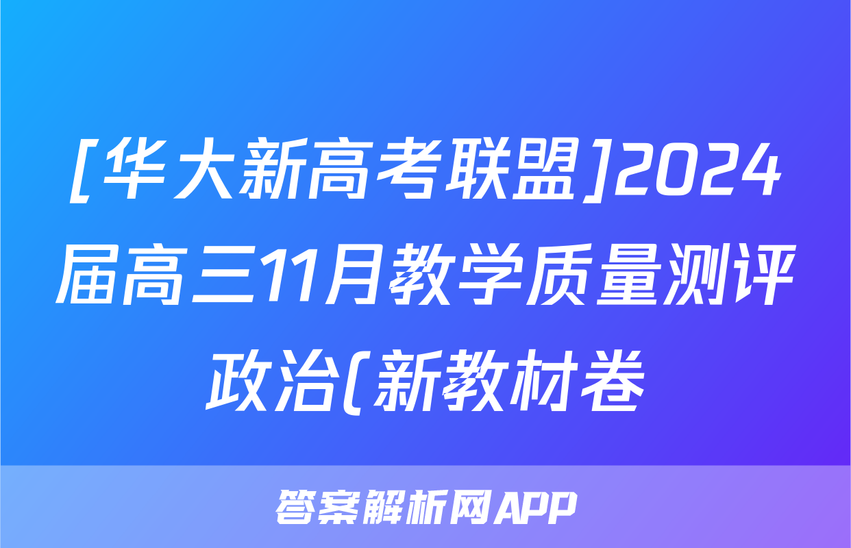 [华大新高考联盟]2024届高三11月教学质量测评政治(新教材卷)试题正在持续更新,目前2024-2025英语周报答案网为大家整理了相关试题及答案,供大家查缺补漏,高效提升成绩。