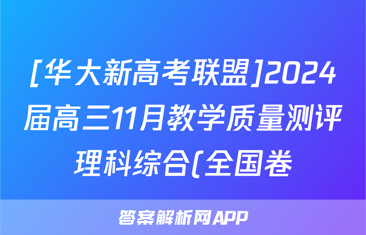 [华大新高考联盟]2024届高三11月教学质量测评理科综合(全国卷)试题