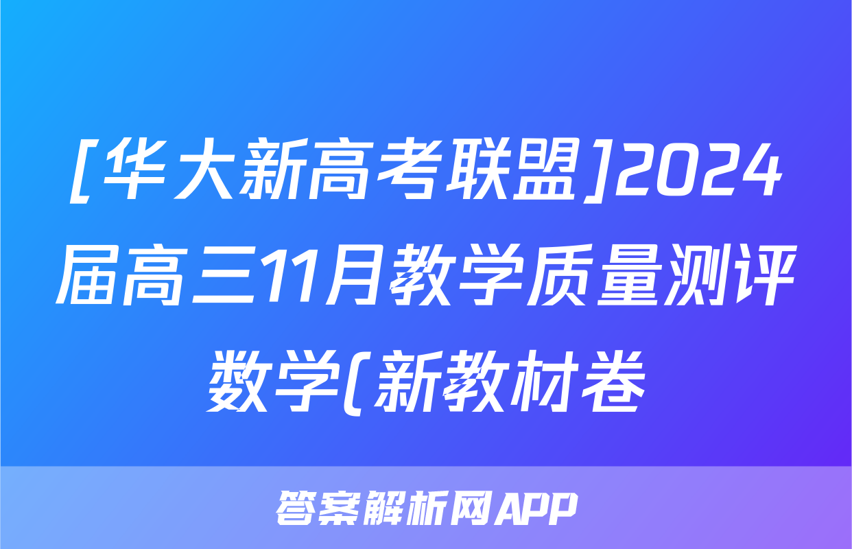 [华大新高考联盟]2024届高三11月教学质量测评数学(新教材卷)答案正在持续更新,目前2024-2025英语周报答案网为大家整理了相关试题及答案,供大家查缺补漏,高效提升成绩。