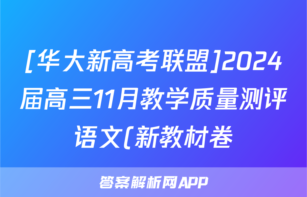 [华大新高考联盟]2024届高三11月教学质量测评语文(新教材卷)试题