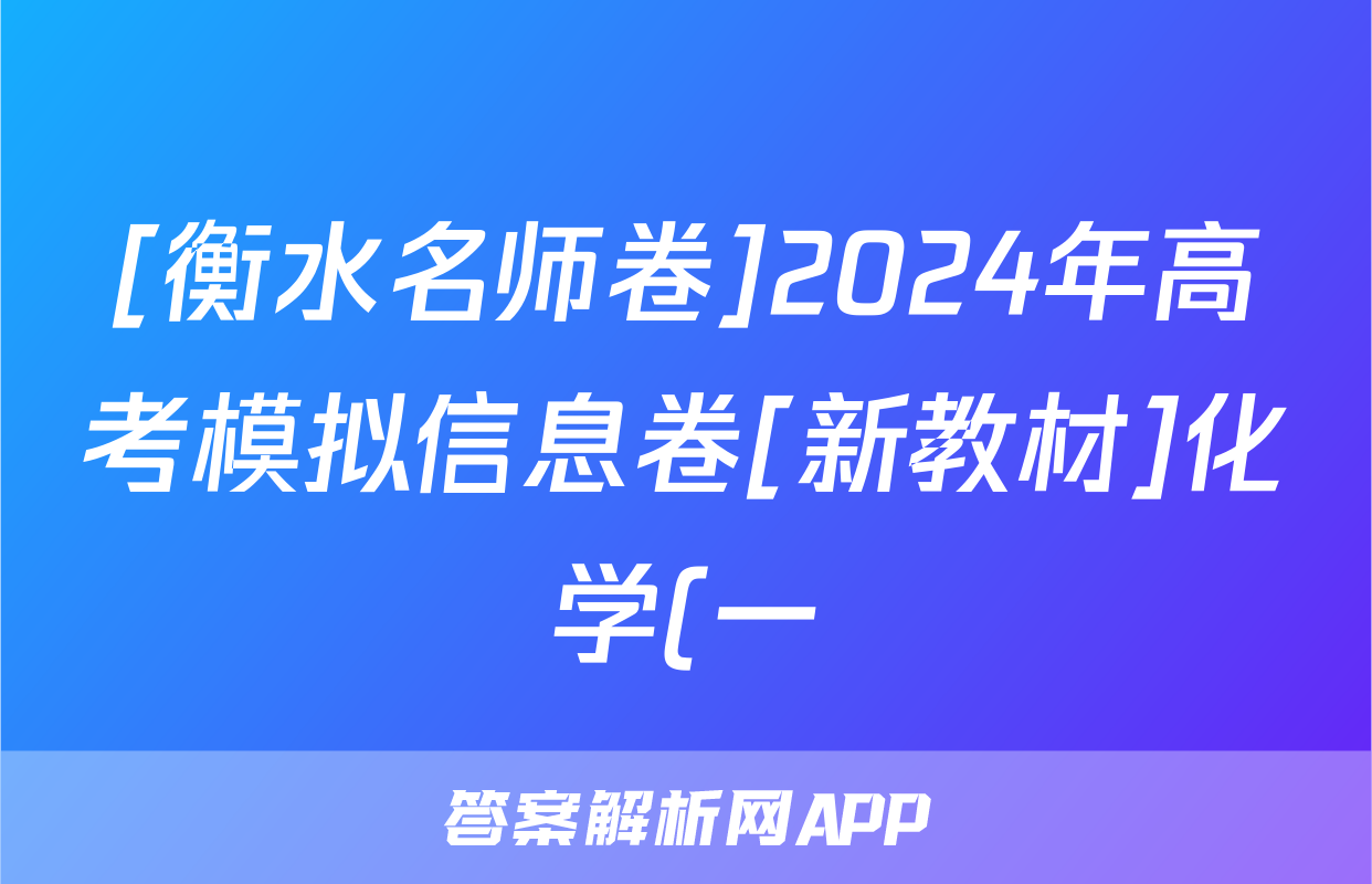 [衡水名师卷]2024年高考模拟信息卷[新教材]化学(一)1试题