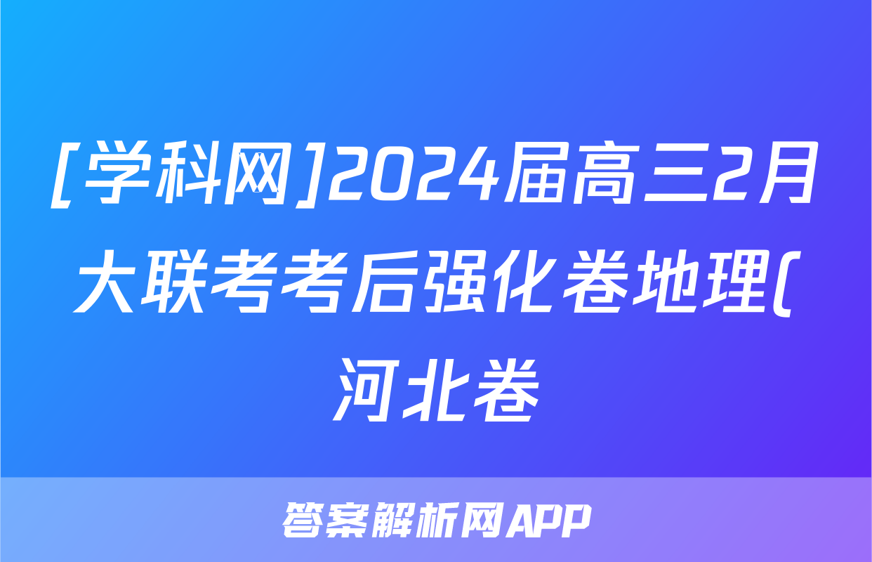 [学科网]2024届高三2月大联考考后强化卷地理(河北卷)试题正在持续更新,目前2024-2025英语周报答案网为大家整理了相关试题及答案,供大家查缺补漏,高效提升成绩。