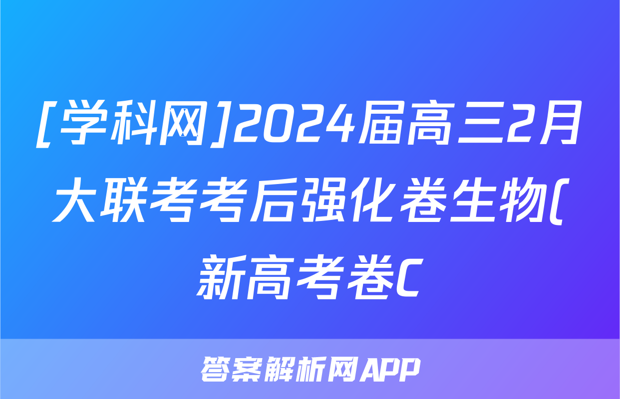 [学科网]2024届高三2月大联考考后强化卷生物(新高考卷C)(新教材)试题正在持续更新,目前2024-2025英语周报答案网为大家整理了相关试题及答案,供大家查缺补漏,高效提升成绩。