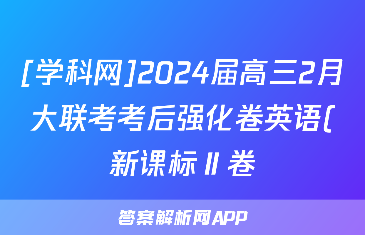 [学科网]2024届高三2月大联考考后强化卷英语(新课标Ⅱ卷)答案正在持续更新,目前2024-2025英语周报答案网为大家整理了相关试题及答案,供大家查缺补漏,高效提升成绩。