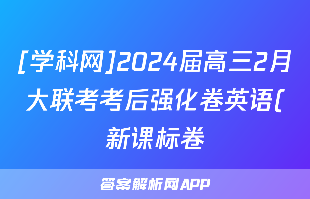 [学科网]2024届高三2月大联考考后强化卷英语(新课标卷)(新疆专用)答案正在持续更新,目前2024-2025英语周报答案网为大家整理了相关试题及答案,供大家查缺补漏,高效提升成绩。
