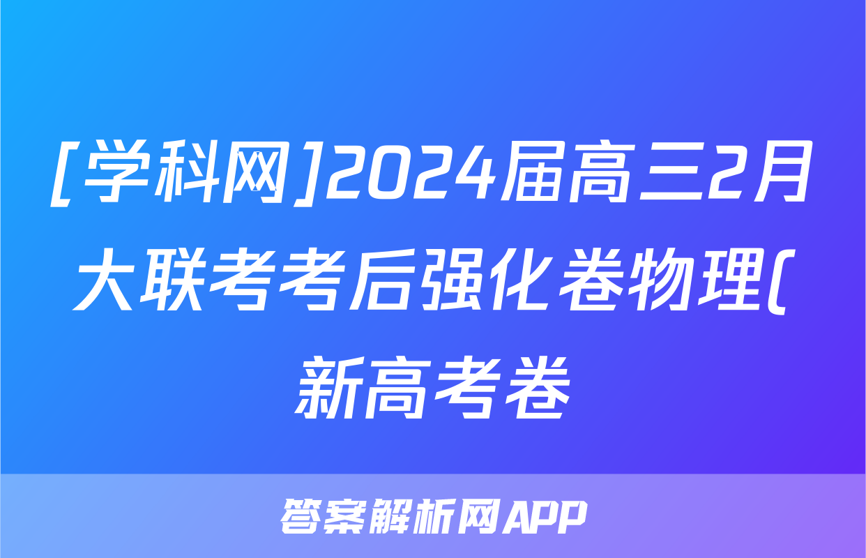 [学科网]2024届高三2月大联考考后强化卷物理(新高考卷)(新教材)答案正在持续更新,目前2024-2025英语周报答案网为大家整理了相关试题及答案,供大家查缺补漏,高效提升成绩。