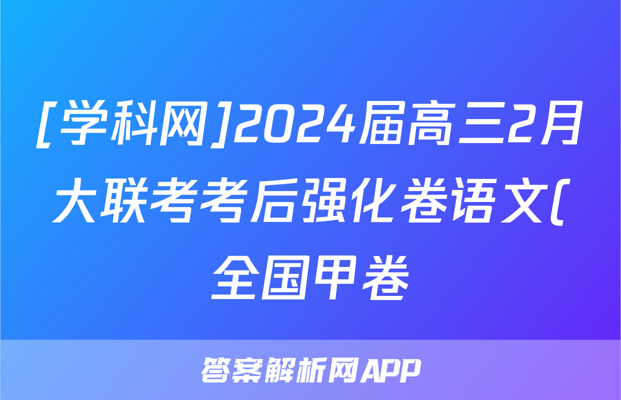 [学科网]2024届高三2月大联考考后强化卷语文(全国甲卷)答案正在持续更新,目前2024-2025英语周报答案网为大家整理了相关试题及答案,供大家查缺补漏,高效提升成绩。