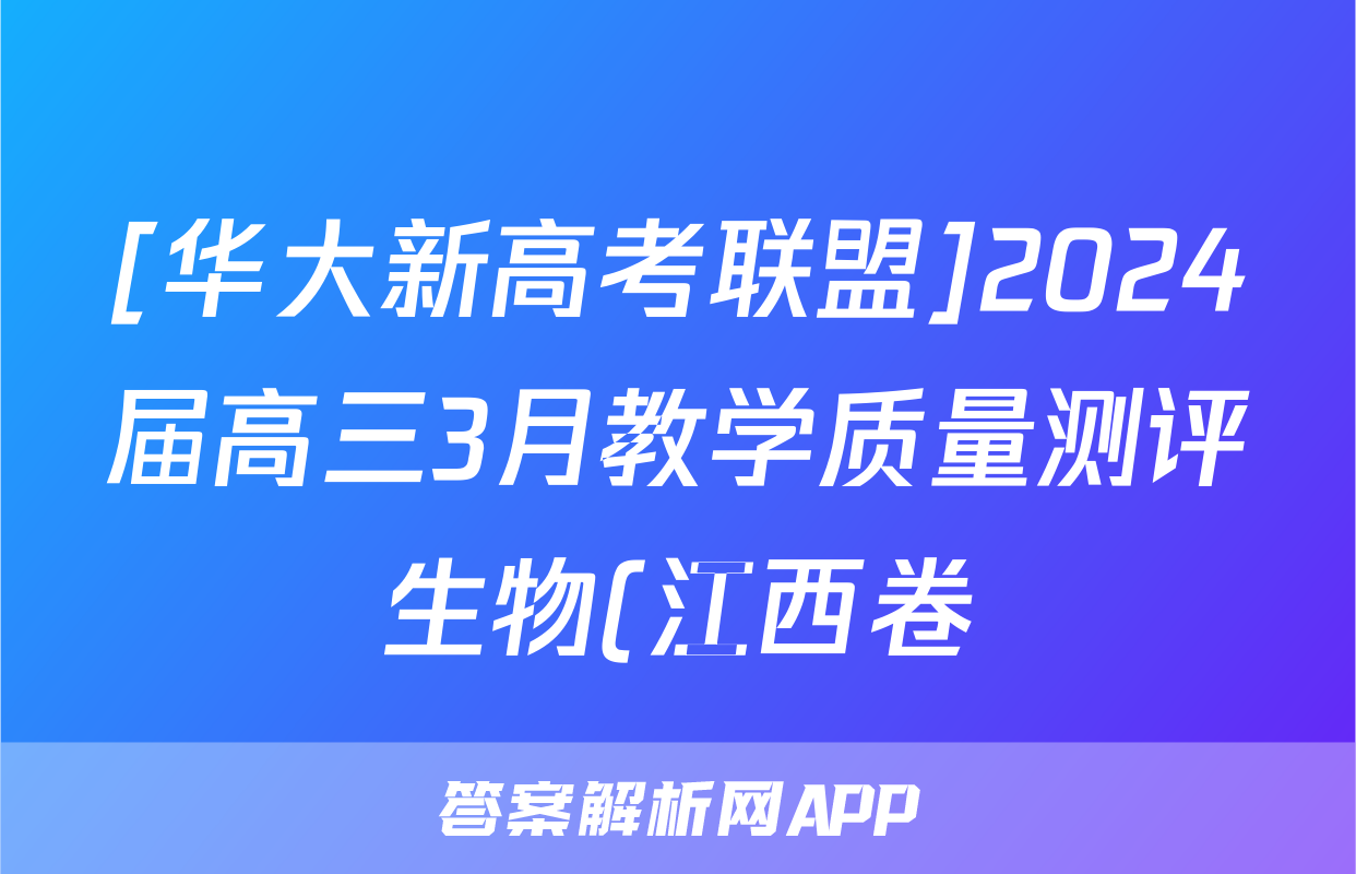 [华大新高考联盟]2024届高三3月教学质量测评生物(江西卷)试题正在持续更新,目前2024-2025英语周报答案网为大家整理了相关试题及答案,供大家查缺补漏,高效提升成绩。